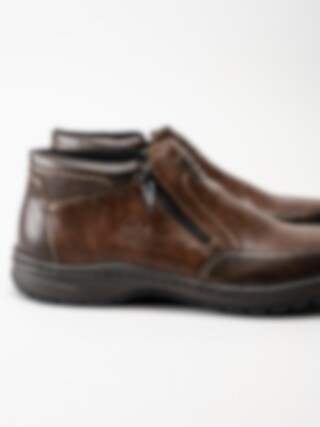 Bruna fodrade kängor i skinnimitation från Rieker. Skönt foder i ull som håller fötterna varma under kalla dagar. Extra bredd för att ge något rymligare passform.