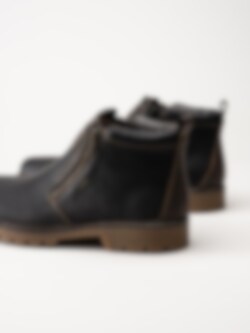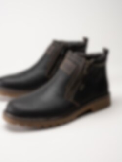 Mörkbruna fodrade boots i skinn i färgen Brown från Rieker. En varm och bekväm boot i mjukt skinn med rund tå och praktiska dragkedjor som gör det enkelt att ta av och på. Fodret i ull tillsammans med den löstagbara innersulan i filt ger skön värme och komfort under hela dagen. Yttersulan i gummiblandning med Fiber-Grip-teknologi är försedd med små glasfiberpartiklar som fungerar som mikrosandkorn, vilket ger extra grepp på hala ytor som is, snö eller våt asfalt, utan att sulan känns hård eller obekväm.