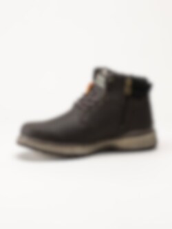 Mörkbruna kängor från Dockers i färgen Chocolate. En robust och bekväm känga i syntet med klassisk pjäxsnörning och dragkedja på insidan för enkel på- och avtagning. Modellen har en grövre yttersula i gummi som ger bra grepp och stabilitet på varierande underlag. Fodret i textil tillsammans med den löstagbara innersulan i textil ger skön komfort under hela dagen. En mångsidig känga som kombinerar stil, funktion och slitstyrka, perfekt för vardag och utomhusbruk.