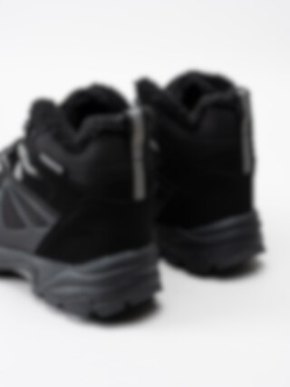 Svarta kängor Kirbie Man i syntet och textil från Eskimo. Membran som gör kängorna vattenäta samtidigt som de andas. Skönt fodrade skor som håller fötterna varma under kalla dagar. Utrustade med dubbar som hjälper dig säkert att ta dig fram på hala underlag.