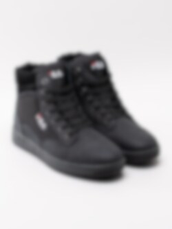 Svarta höga sneakers kängor Knox Mid från FILA tillverkade i skinn med syntetisk yta. FILA är tillbaka med en klassisk sneaker-kängamodell för män. 7 håls-snörning i nylon som öppning samt för att justera passformen. Broderad logga på plös och på utsidan som detalj.