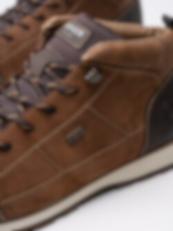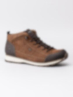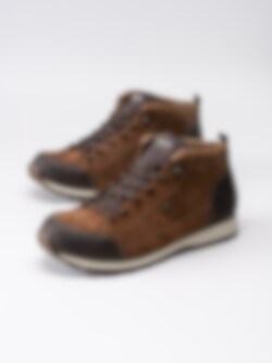 Bruna kängor i nubuck från Rieker. Skorna är utrustade med Rieker-Tex som gör den vattenavvisande och du håller dig torr. Med slip on och resårsnörning gör det lättare att ta på sig skorna.