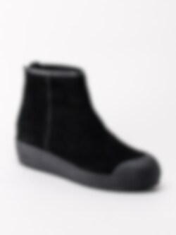Svarta kängor Guard II från Bally. Klassisk känga i vattenbeständig kalvmocka med en grov gummisula i en stilren design. Gummisulan är framtagen med Vibram® Arctic Grip-tekniken som är speciellt konstruerad och utformad för att ge skon ett maximalt grepp på kalla, islagda eller snötäckta ytor. Skon är fodrad med shearlingpäls. Stängs baktill med dragkedja. Bally-logotyp på skons utsida.