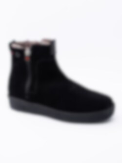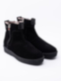 Svarta curlingkängor Mount Baker för herr från Canada Snow tillverkade i mocka. Varmfodrade för att hålla dig varm under kalla temperaturer. Dragkedja på insidan som öppning. Dekorativ dragkedja på utsidan med logga. Brunt foder och löstagbar innersula i fårskinn för att hålla dig varm. Sydd läderbit med logga på skaftkant av framparti. Svart yttersula i gummi med mönster och röd logga.
