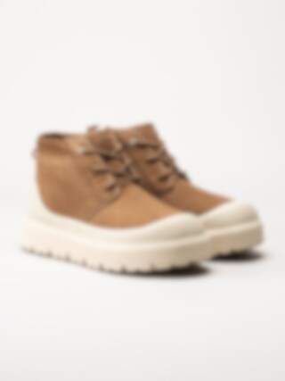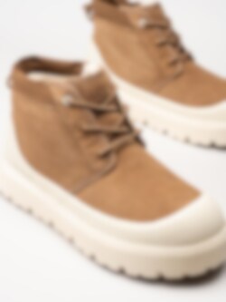 Ljusbruna kängor Neumel Weather Hyb Chestnut White i mocka från Ugg. En låg herr känga fodrad med UGGplush™ ullblandning, EVA fotbädd och uttagbar innersula för bästa komfort. Yttersula gjord av sockerrör- SugarSole™ teknologi och EVA. Håller värmen i upp till -20 grader. Ett par riktigt coola och trendiga kängor som samtidigt är varma, bekväma och vattentäta. En av våra absoluta favoriter!