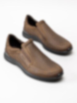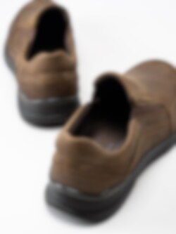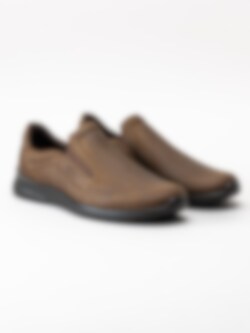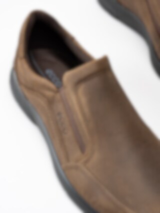 Bruna slip on Irving tillverkade i oljad nubuck från Ecco. Sköna promenadskor för säsongens promenader.