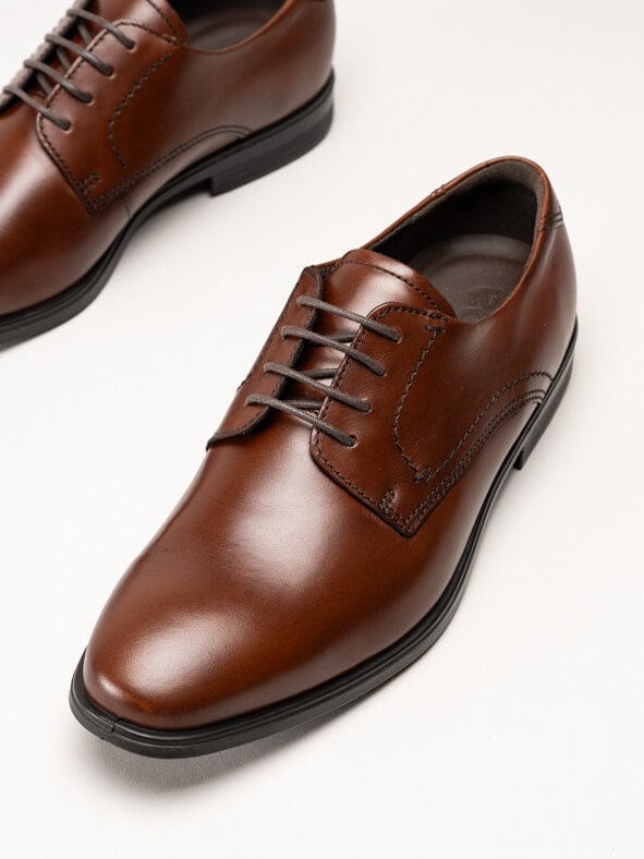 • Ecco - Melbourne - Bruna klassiska snörskor i skinn