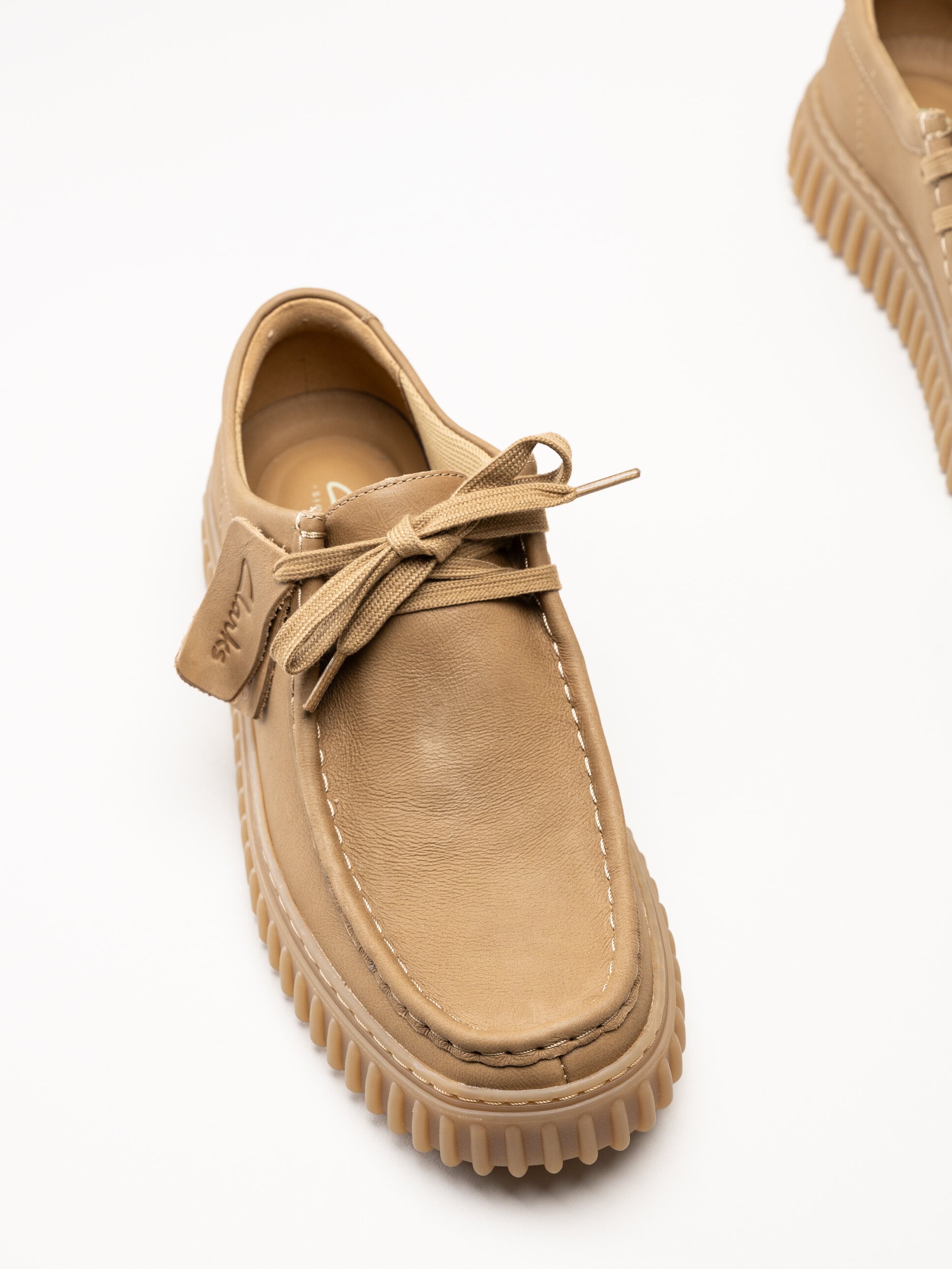 Clarks - Torhill Lo - Beige snörskor i skinn