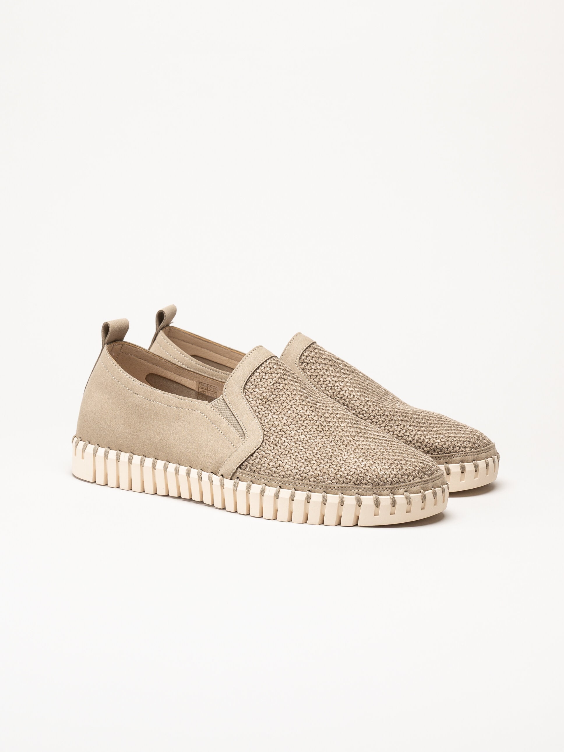 Beige slip-on skor Tulip Men från Ilse Jacobsen i färgen Coriander Pearled Ivory. Skorna är tillverkade i en kombination av syntet och textil som ger ett lätt och stilrent uttryck. Den smidiga slip-on-designen kompletteras av små resårer på sidorna som gör dem enkla att ta på och av samt ger en flexibel och bekväm passform.
