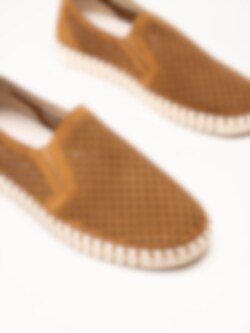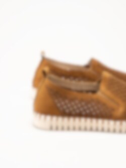 Bruna slip-on skor Tulip Men från Ilse Jacobsen i färgen Cashew. Skorna är tillverkade i syntet med en perforerad ovandel som ger ett luftigt och stilrent uttryck. Den smidiga slip-on-designen kompletteras av små resårer på sidorna som gör dem enkla att ta på och av samt ger en flexibel och bekväm passform.