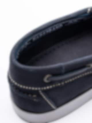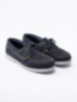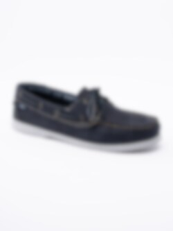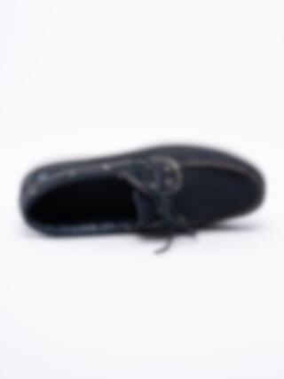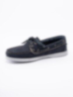 Seglarsko 2-Eye från Marstrad är en mörkblå snörsko i nubuck. Brun söm längs framparti och vita sömmar som detalj. Brun snörning i läder med 2 hål som öppning med öljetter i silver. Lädernsörning som fortsätter runt öppning som är klassiskt för en seglarsko. Blått foder i mocka och innersula i nubuck med präglad logga. Grå yttersula i gummi med vågigt mönster och logga.