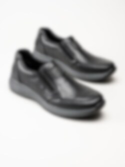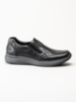 Svarta promenadskor i skinn från Rieker. Ett par fina loafers med foder av textil och innersula av skinn. Yttersula av syntet.