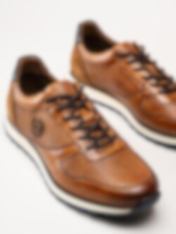 Bruna dressade promenadskor i skinn från Bugatti. Sköna promenadskor med foder och innersula i textil, yttersula i gummi med mönster för bra grepp på underlaget. 6-håls snörning med runda skoband. Ett par riktigt stiliga herrskor att gå in våren och sommaren med!