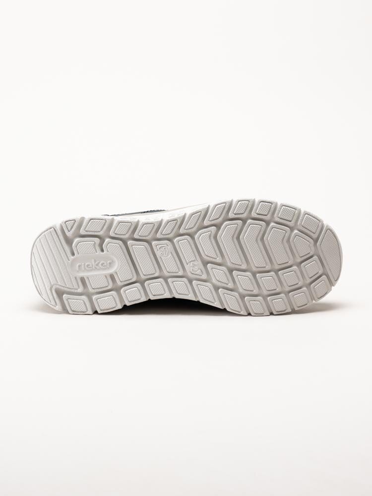 Mörkblå slip on skor i textil från Rieker. Ett par lätta och luftiga promenadskor med bred läst och Ready to Go bakkappa så du slipper använda skohorn. Riekers Antistress teknologi vilket gör dom sköna från första steg. Yttersula i lättviktsmaterial. Luftig fritidssko och en snygg modell att möta våren och sommaren i!