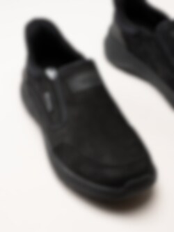 Rieker - Svarta slip on promenadskor i oljad nubuck