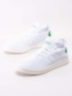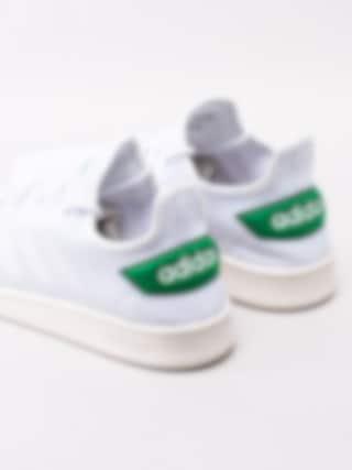 Vita sneakers Court Adapt för män från Adidas i stickad mesh. Dessa tennis-inspirerade sneakers kompletterar din street look. Vita sömlösa 3-stripes på in- och utsidan samt gröna detaljer såsom logotyp på plös och bakparti med vit logotyp. Sköna strumpliknade sneakers som enkelt sticker i foten och trär på. Snörning för att kunna justera till en smidigare passform. Textilfodrade med en skön Cloudfoam innersula för ökad komfort. Vit gummisula med hexagonmönster.