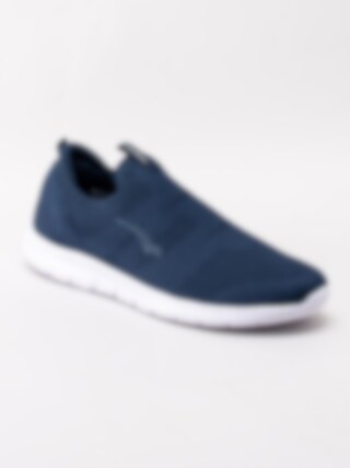 Mörkblå slip on sportskor Pace från Bagheera i stickad mesh. Nätta sportskor med en smidig passform och lätt påtagning gör dig redo för dagens ärenden. Sömlös logotyp på utsidan. Hälla på plös med logotyp och bakskaft som hjälpmedel vid påtagning. Textilfodrade med löstagbar mjuk och vadderad Memory Foam innersula för ökad komfort. Vit lätt sula i syntet med mönstrad yttersula.