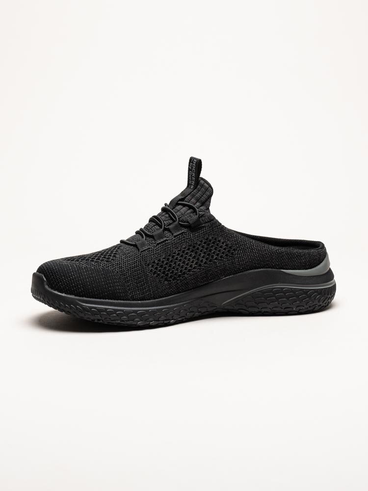 Svarta sportiga slip in skor Black från Dockers. Denna sportiga slip-in sko från Dockers är perfekt för avslappnade dagar, oavsett om du är i fritidshuset, husvagnen eller inomhus. Tillverkad i luftig textil med resårsnören som dekorativ detalj, kombinerar den stil och funktion. Det mjuka textilfodret och den uttagbara innersulan ger hög komfort, medan yttersulan i gummiblandning och syntet erbjuder bra grepp. En bekväm och praktisk sko för lediga stunder!