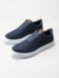 Exani - Canvas Leather M - Marinblå sneakers i textil med skinndetaljer