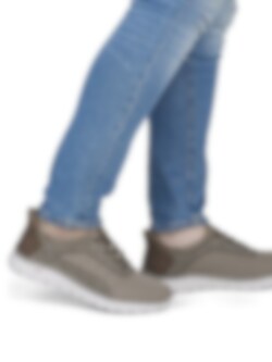 Beige slip on sneakers från Rieker. Skorna är tillverkade i en kombination av textil och syntet som ger ett lätt, sportigt och avslappnat uttryck.