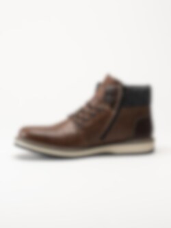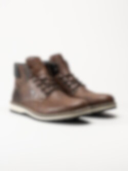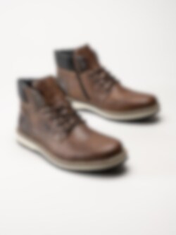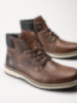 Bruna ullfodrade kängor från Rieker i färgen Toffee. En varm och bekväm vinterkänga i slitstark syntet och textil, designad för att hålla fötterna torra och skyddade under kyliga och fuktiga dagar. Tack vare RiekerTEX-membranet står kängan emot väta samtidigt som den tillåter foten att andas. Modellen har en mjuk textilkant vid bakkappan för extra komfort, samt snörning framtill som gör det lätt att justera passformen. Dragkedjan på insidan gör på- och avtagning smidig och praktisk. Det varma ullfodret håller värmen effektivt, medan den vadderade innersulan i filt ger en mjuk och behaglig känsla hela dagen.