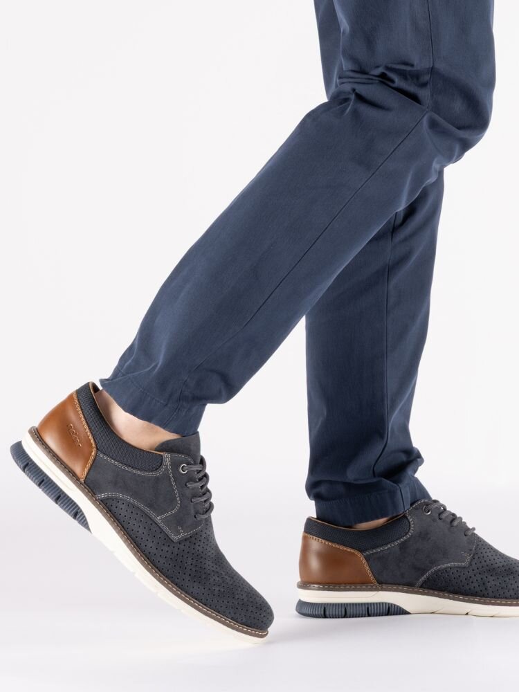 Mörkblå sko i mocka från Rieker i färgen Kobolt. Skon är tillverkad i mjuk mocka som ger ett stilrent och klassiskt uttryck. Den traditionella snörningen framtill gör det enkelt att justera passformen för en stabil och bekväm känsla.