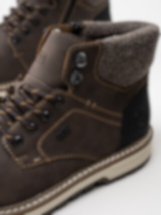 Mörkbruna ullfodrade kängor från Rieker. Sköna snörkängor utrustade med rieker-tex som gör dem vattenavvisande. Foder i ull och innersula i fleece för kallare temperaturer.
