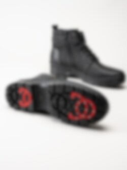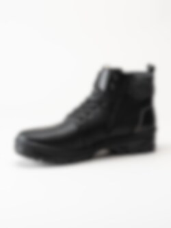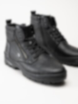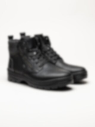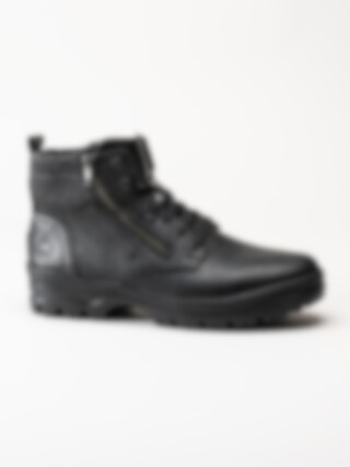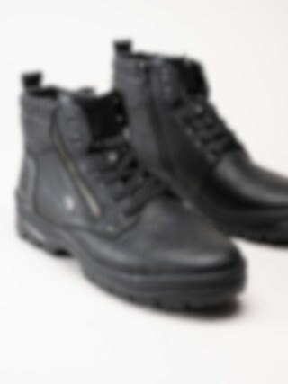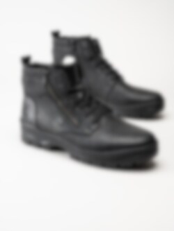 Svarta varmfodrade broddkängor från Rieker i färgen Black. En funktionell vinterkänga i en kombination av skinn, textil och syntet, utvecklad för att ge värme, trygghet och komfort under kalla och hala vinterdagar. Kängan är utrustad med RiekerTEX-membran som skyddar mot väta samtidigt som det låter foten andas, vilket gör den idealisk även i slask och snöfall. Modellen har dubbla dragkedjor på sidorna som gör av- och påtagning extra smidig, tillsammans med 6-håls snörning som ger möjlighet att anpassa passformen efter foten. Fodret i varm ull kombineras med en löstagbar innersula i ull, vilket ger effektiv isolering och gör skon enkel att vädra eller byta sula i vid behov.
