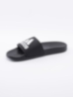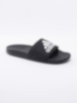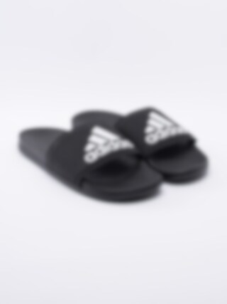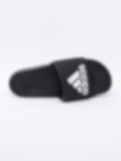Svarta sandaler Adilette från Adidas är en svart sportsandal i syntet. Utrustad med Cloudfoam sula för ökad komfort. Brett band med vit logga på som håller foten på plats. Svart foder och innersula i syntet med präglad logga. Svart yttersula i syntet med mönster och logga.