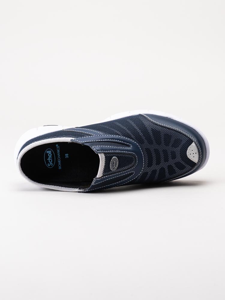 Blå slip-on skor Jump Next från Scholl i färgen Dk. Blue. Skorna är tillverkade i en kombination av textil och syntet som ger ett lätt och sportigt uttryck. Den smidiga slip-on designen gör dem enkla att ta på och av, samtidigt som de ger en bekväm och flexibel passform. Invändigt är modellen fodrad med textil, och den löstagbara innersulan i textil bidrar med god komfort samt möjlighet att använda egna ilägg vid behov. Med Biomechanics®-teknologi från Scholl får du extra stöd och en mer naturlig fotposition, vilket bidrar till ökad komfort vid varje steg.