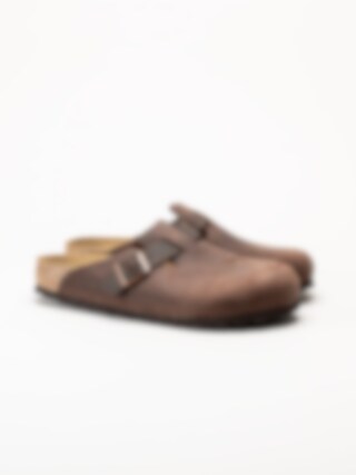 Birkenstock - Boston - Mörkbruna slip-in sandaler i oljat skinn