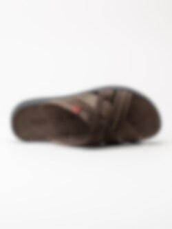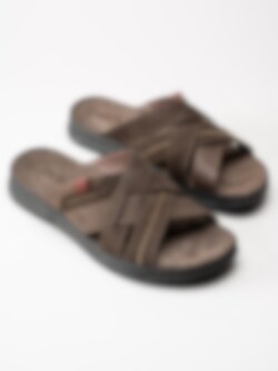 Bruna slip in sandaler i skinn från Rohde. Sköna tofflor med foder i skinn och innersula i mocka för att erbjuda en behaglig känsla mot dina barfotafötter och så de känns mjuka och sköna för varje steg. Klassiska sandaler som också kallas för biosandaler - perfekt slip in modell under sommaren eller varför inte som inneskor på jobbet?