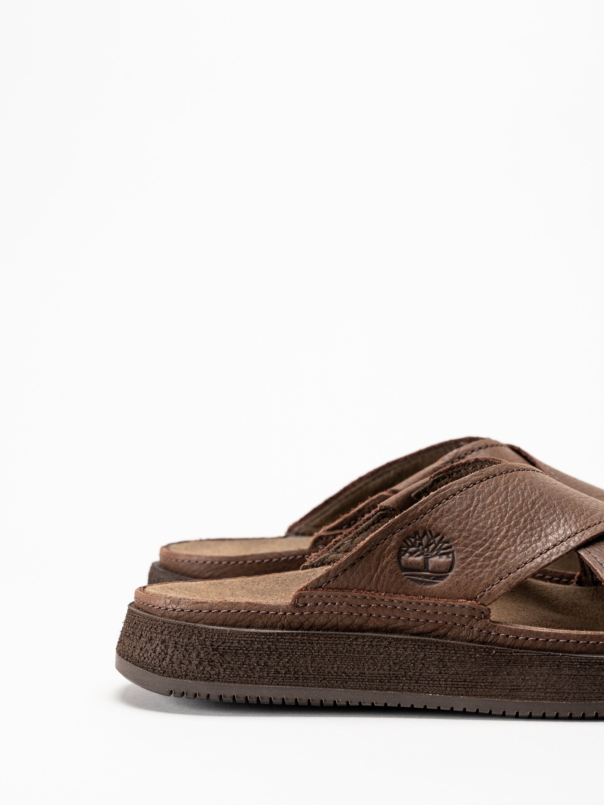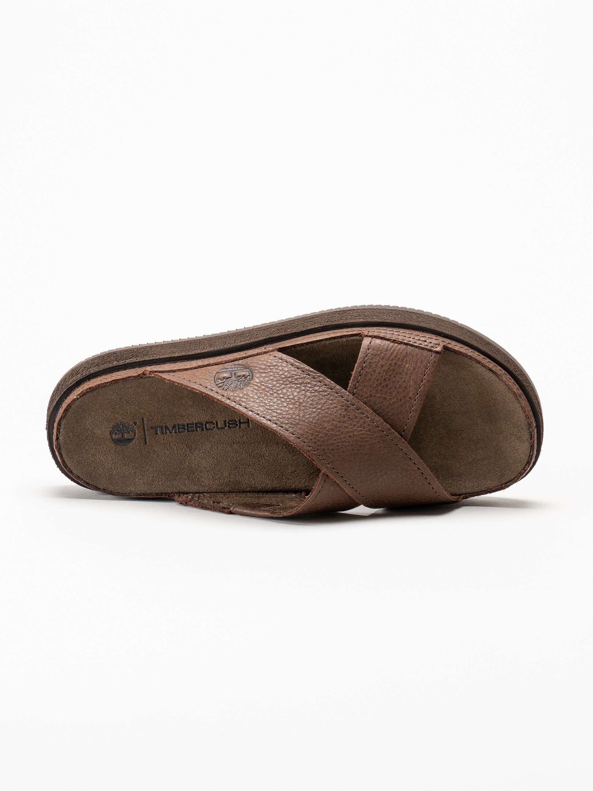 Mörkbruna sandaler från Timberland i färgen Dark Brown Full Grain med en robust och stilren design. Ovandelen är tillverkad i skinn och har korslagda remmar som ger ett stabilt och följsamt uttryck. Invändigt är sandalen fodrad med textil, och innersulan i textil med TimberCush™-teknologi ger mjuk dämpning och hög komfort vid varje steg.