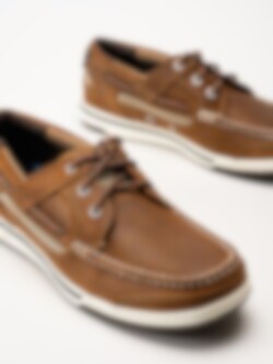 Bruna seglarskor i oljat skinn Triton Three Eye FGL Brown Cinnamon från Sebago. Sebago Triton Three Eye FGL är en tidlös seglarsko i oljat premiumläder, designad för dig som vill kombinera klassisk stil med hög komfort och funktion, både till sjöss och i stan. Skon är handsydd med omsorg och detaljerad finish, och har en vadderad plös samt ovandel i ventilerande Air Mesh för optimal komfort och andningsförmåga. Den är utrustad med runda nylon-snören, foder i textil/mesh och en formgjuten, urtagbar EVA-innersula täckt med mesh - vilket ger en mjuk, stabil känsla under foten hela dagen.