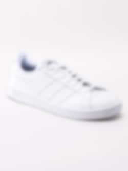 Vita sneakers Grand Court från Adidas i täckfärgat skinn. Snygga och klassiska sneakers med tennis inspirerande stil. En vit och stilren sko som passar till många tillfällen. Klassiska 3-Stripes i syntet som pryder sidorna. Vit snörning i polyester på 7 hål. Mjuk stötdämpande mellansula som ger komfort till varje steg tack vare Cloudfoam. Löstagbar innersula.