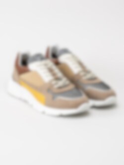 Ambitious - City Run - Beige sneakers med gula och bruna detaljer