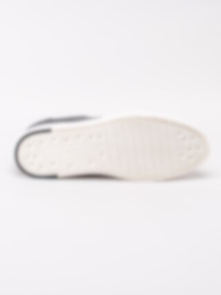 Mörkblå sneakers Orazio från Bugatti tillverkade skinn. Smidiga sneakers med resårsnörning som gör det enkelt för att dig att komma i och ur skorna. Präglad logga på plös. Snygga sneakers i mjukt fint läder som passar utmärkt till vardags. Textilfodrade med löstagbar innersula om egen sula önskas att användas. Vit sula på ca 2 cm med dekorativ söm.