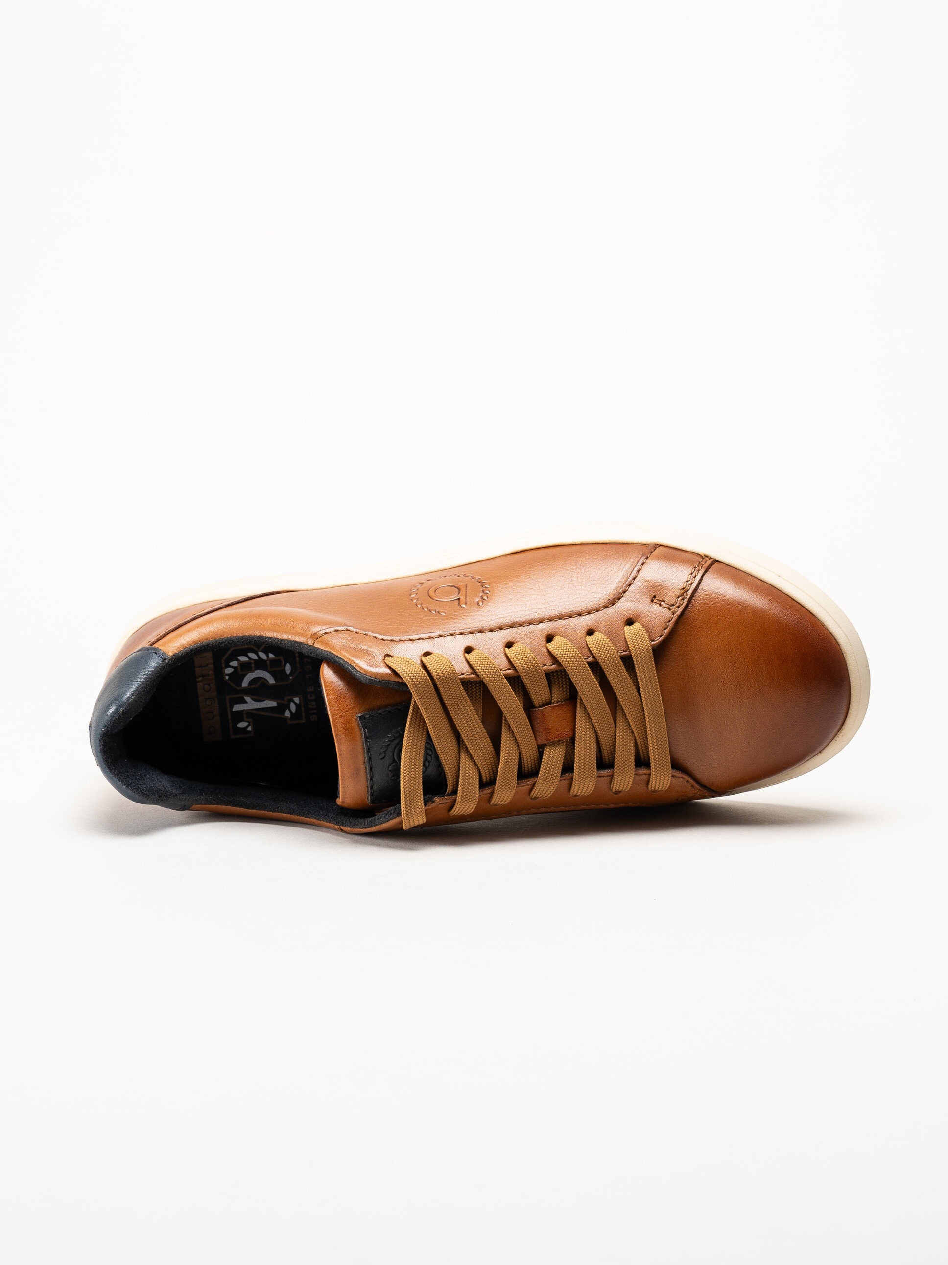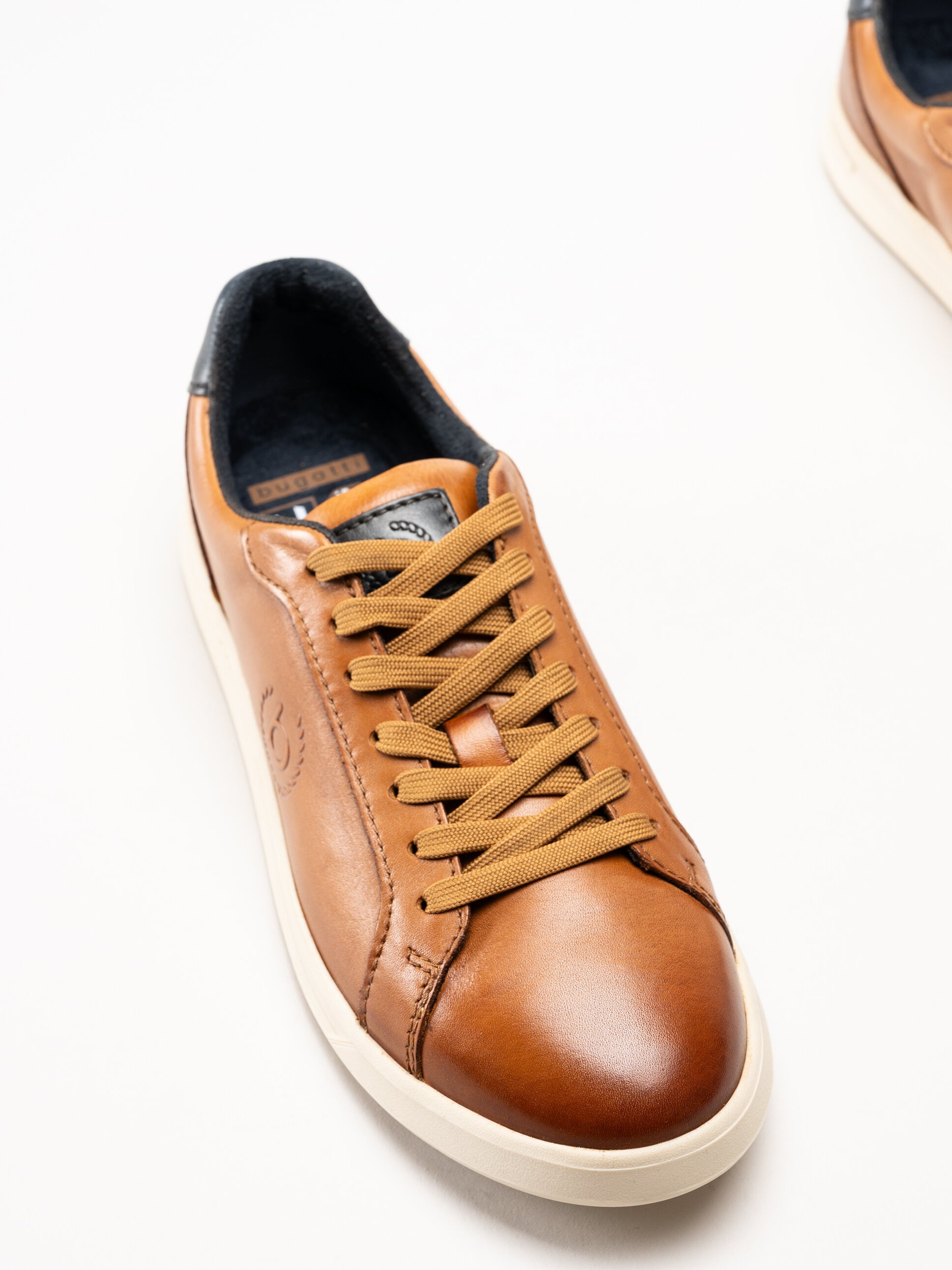 Ljusbruna sneakers i skinn Powder från Bugatti i färgen Cognac. Skorna är tillverkade i mjukt skinn som ger ett stilrent och tidlöst intryck med en sportig silhuett, perfekt för vardag och fritid. Invändigt är modellen fodrad med skinn för en behaglig känsla mot foten, och den löstagbara innersulan i textil med Soft Fit-teknologi ger extra komfort och dämpning under hela dagen.