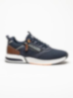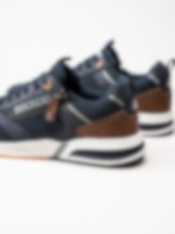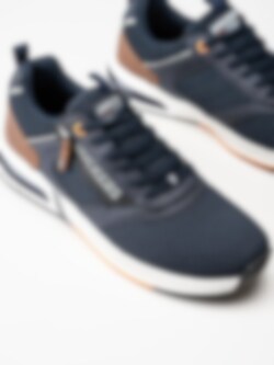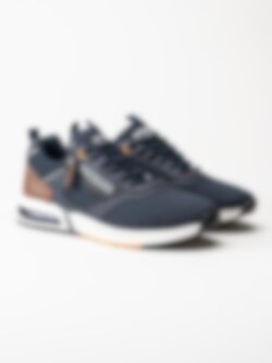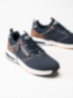 Blå sportiga sneakers i textil från Dockers. Snygga sneakers med dold zip och logga på sidan. Foder och löstagbar innersula i textil. Vit yttersula i syntet.