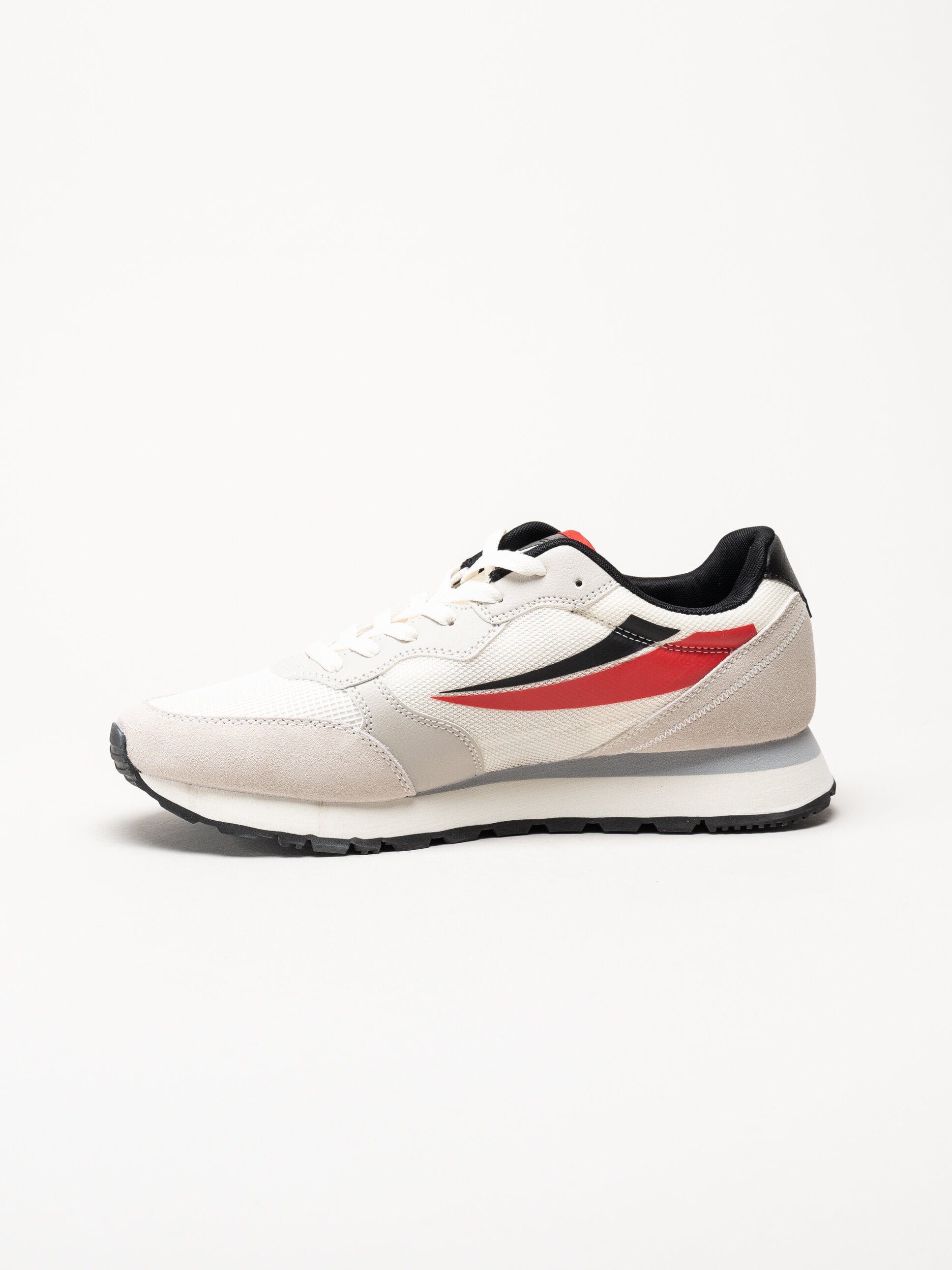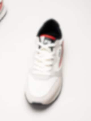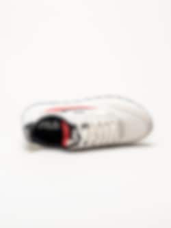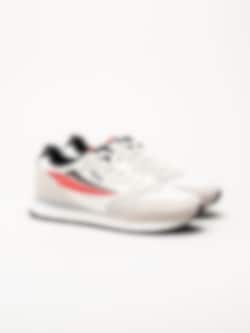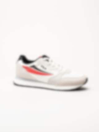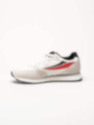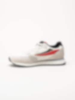 Beige sneakers i textil Hypert från Fila i färgen Marshmallow/Fila Red/Black. Skorna är tillverkade i en kombination av textil, syntet och mocka som ger en balanserad mix av lätthet, stöd och slitstyrka. Färgkombinationen med beige bas och detaljer i rött och svart ger modellen ett sportigt och modernt uttryck. Den klassiska snörningen framtill gör det enkelt att justera passformen för en säker och bekväm känsla.