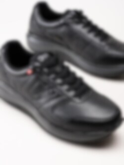 Svarta promenadskor i skinn från Joya. Skorna är slip resistant och har en bred passform. Foder och löstagbar innersula i textil. Yttersula i gummi med en klackhöjd på ca 5.5 cm.