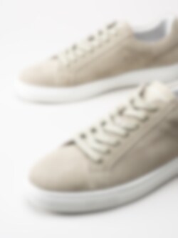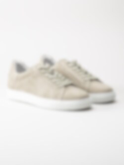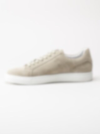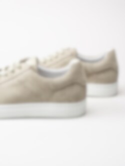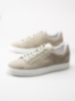 Beige sneakers, Lukas, i mocka från Philip Hog. Klassiska bruna sneakers som går att styla med de flesta outfits. Logotyp på tygbit på plös. Brun 7-håls snörning i bomull med öljetter för att kunna anpassa till individuell passform. Skinn- och textilfodrade med löstagbar innersula i skinn. Vit sula i syntet med räfflad yta.