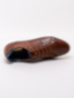 Mörkbruna sneakers från Playboy i skinn. Snygga sneakers med reptilmönstrad panel på in- och utsidan som detalj. Mörkbrun 6-håls snörning i bomull med bronsfärgade öljetter för att anpassa till individuell passform. Bakskaft och plös i mörkblått skinn med präglad text på bakparti Since 1936 som detalj. Textilfodrade med löstagbar innersula i skinn. Vit sula i gummi med randig yttersula.