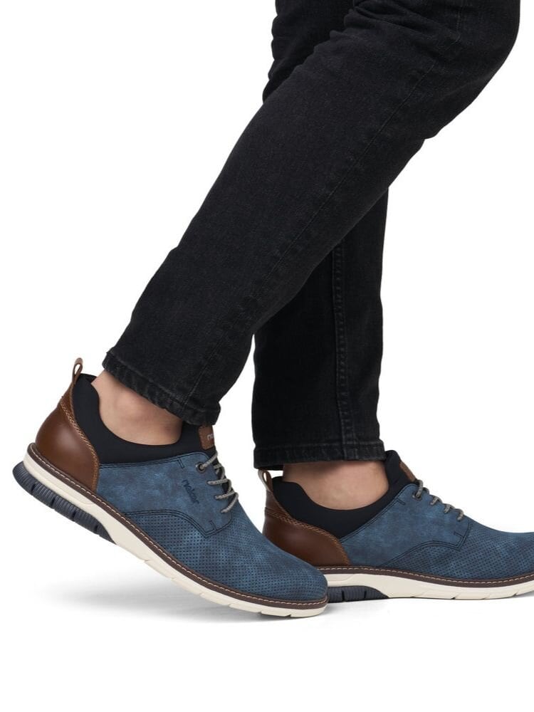 Ljusblå slip on sneakers från Rieker i färgen Baltik. Skorna är tillverkade i en lätt och slitstark kombination av syntet och textil som ger ett fräscht, sportigt uttryck och god komfort för vardagens alla aktiviteter.