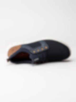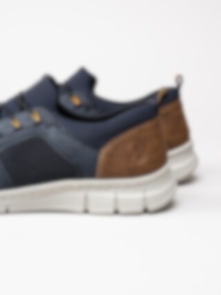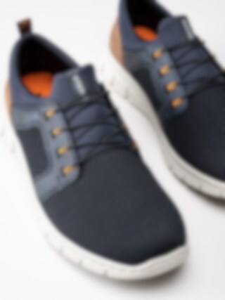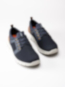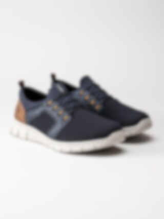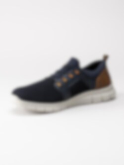 Mörkblå slip-on sneakers i textil från Rieker i färgen Blue med en bekväm och sportig design. Skorna är tillverkade i lätt och följsamt textilmaterial med inslag av syntet, vilket ger en smidig och flexibel känsla för vardagsbruk. Den elastiska snörningen framtill gör dem enkla att ta på och av samtidigt som passformen hålls säker.