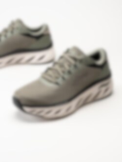 Gröna sportskor Arch Fit Glide Step i textil och syntet från Skechers. Bekväma sneakers med extra sötd under hålfoten. Tack vare Glide Step-mellansula ger skorna ett naturligt momentum i varje steg. Goodyear yttersula i gummi ger förbättrad grepp, stabilitet och hållbarhet.