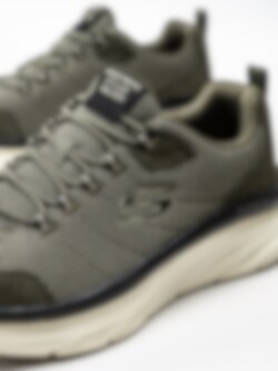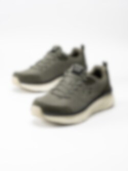 Olivgröna sneakers DLux Walker Bersaga i textil från Skechers. Innersula i memory foam för extra komfort.