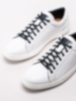 Vita sneakers Båstad från Stressless i skinn. Det kan variera i färg och textur från par till par då skorna är tillverkade i ett fint, naturligt skinn. Klassiska sneakers som passar till flera tillfällen, vardags som till den lediga sommarfesten. Mörkblå 7-håls snörning i bomull för att justera till individuell passform. Foder i textil och infärgad, skön innersula i läder som kan torrfälla, så därför rekommenderar vi att inte använda ljusa strumpor. Vit yttersula i gummi för bra grepp. Medföljer ett litet skohorn och skopåse för att dig att ta hand om dina skor.