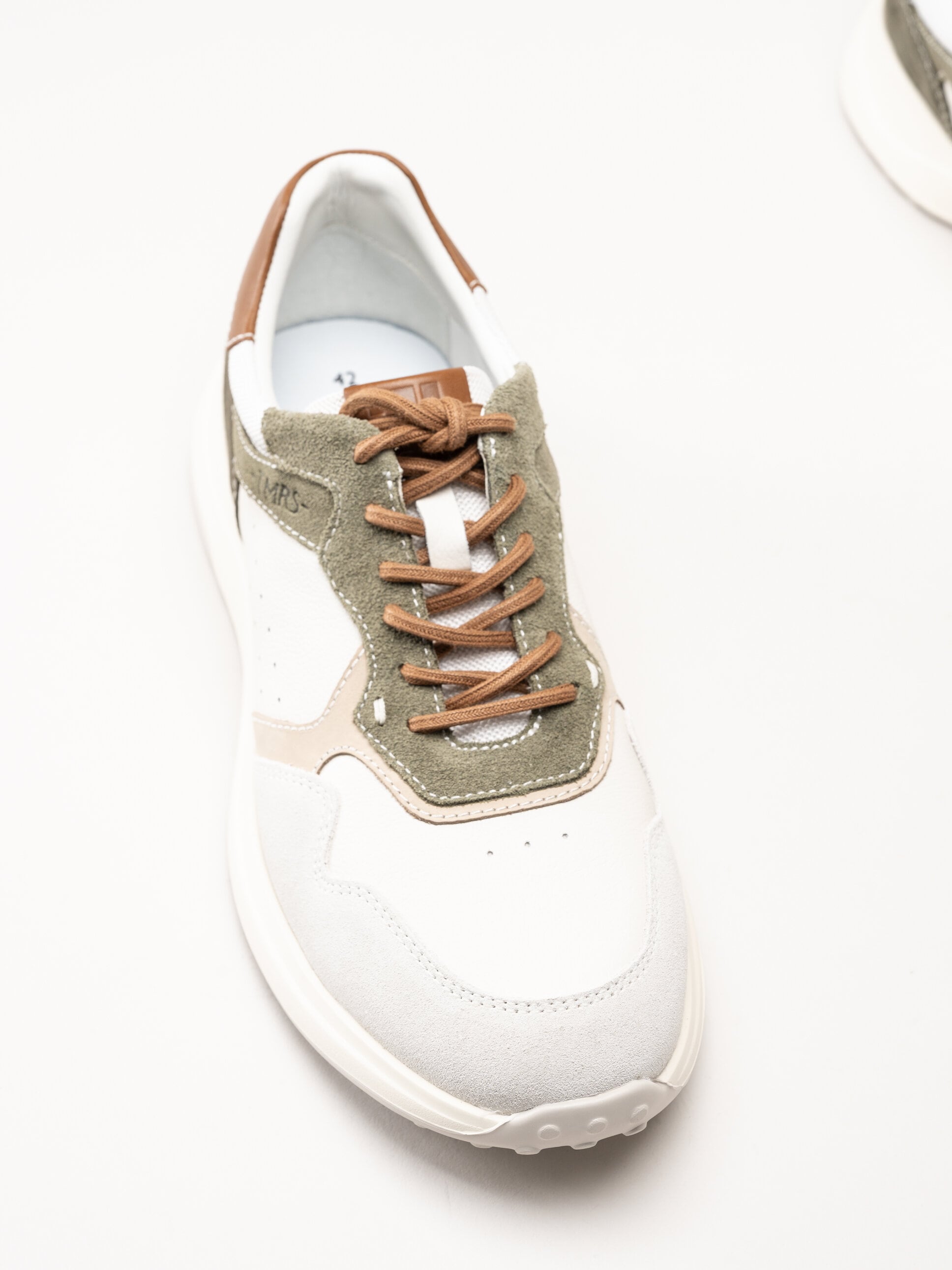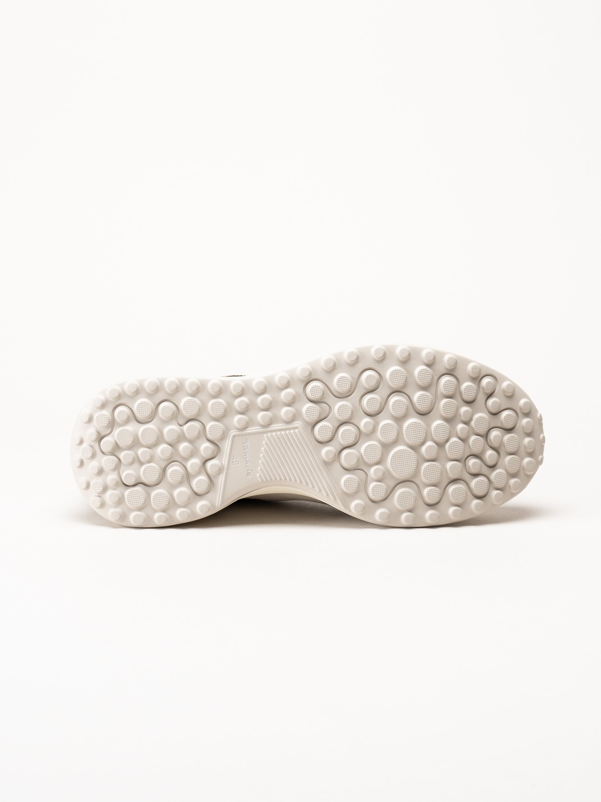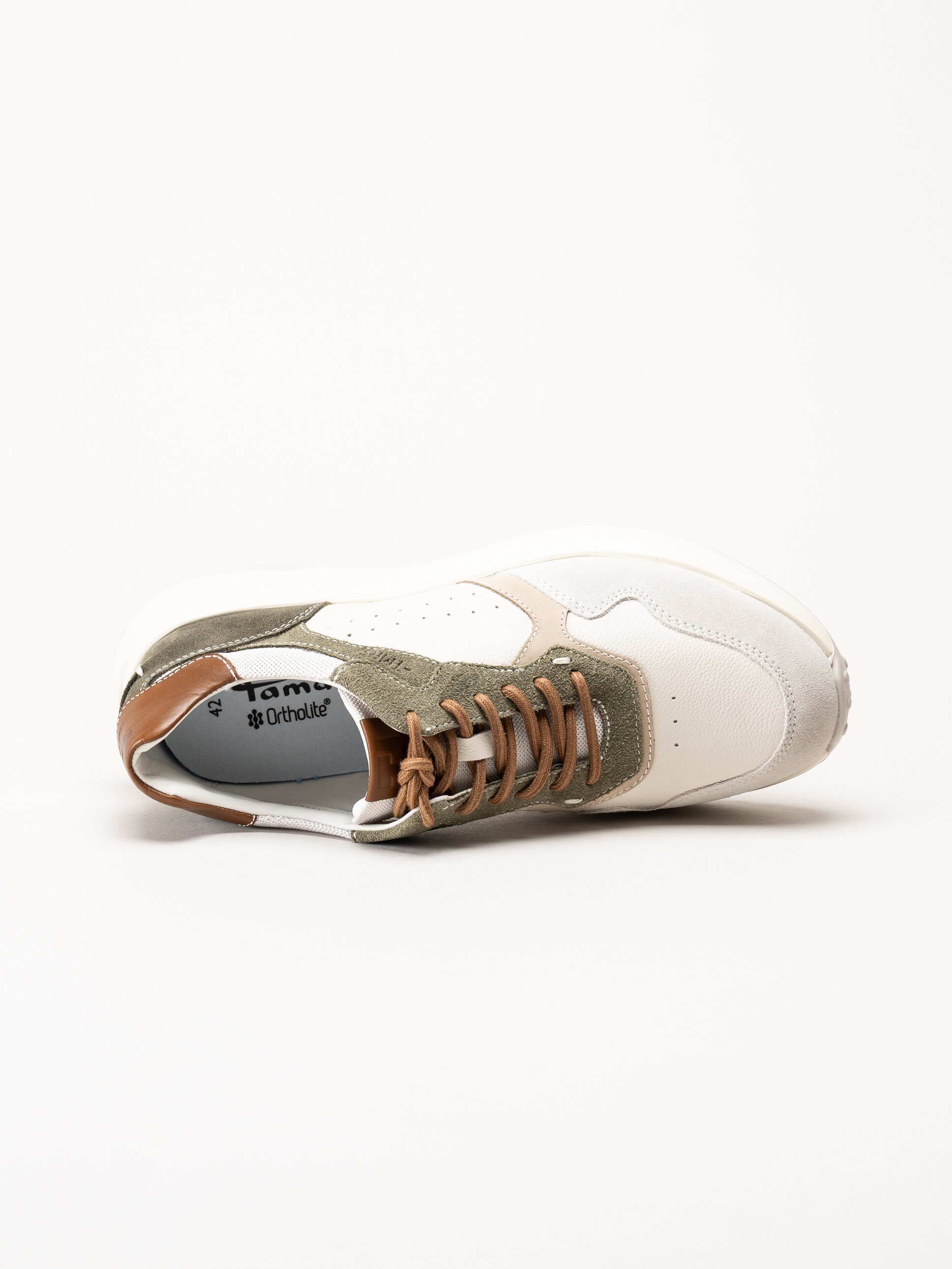 Beige sneakers i mocka från Tamaris i färgen Olive Comb. Skorna är tillverkade i en kombination av mocka och skinn, där nyanser av beige, grön och grå skapar ett harmoniskt och modernt färgspel. Den klassiska snörningen framtill ger en justerbar och stabil passform.
