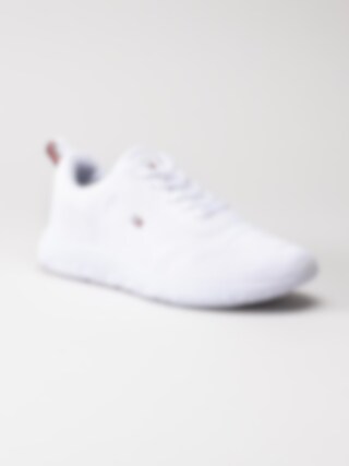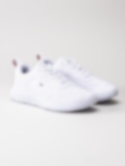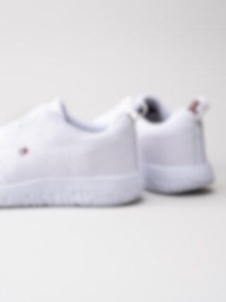 Vita sneakers i textil från Tommy Hilfiger. Snygga sportskor med foder och innersula i textil. Yttersula i syntet. Broderad logga på utsidan av skon. Snörning för bästa möjliga passform.